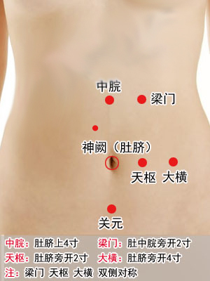 中脘穴:在胃的中部,肚脐上4寸处,占据了胃的主体部分,因此主治脾胃疾病,对于促进胃的蠕动,治疗胃脘痛、腹胀、泛酸等都有较好的效果,而且还可以提高机体免疫能力。