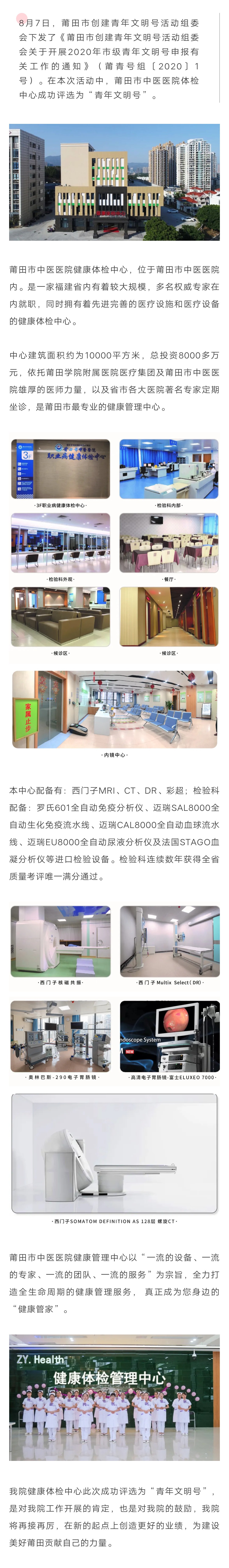 热烈祝贺我院健康体检中心成功入选“青年文明号”集体名单!