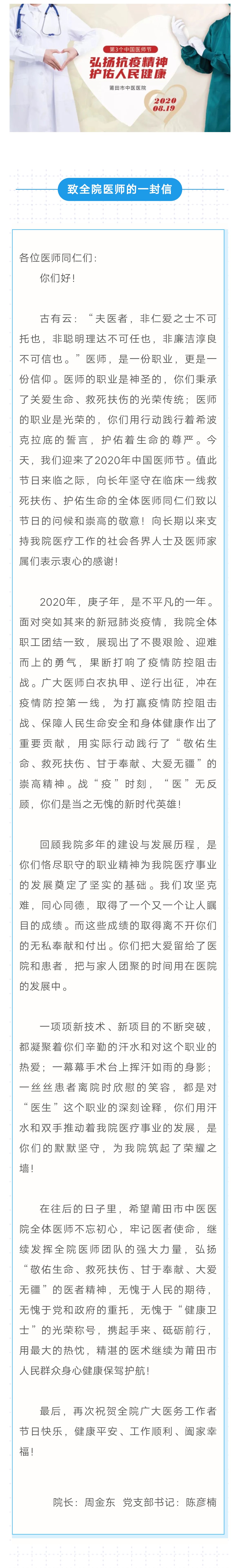 【8.19日中国医师节】医路走来·不忘初心——致莆田市中医医院全体医师同仁的一封信!