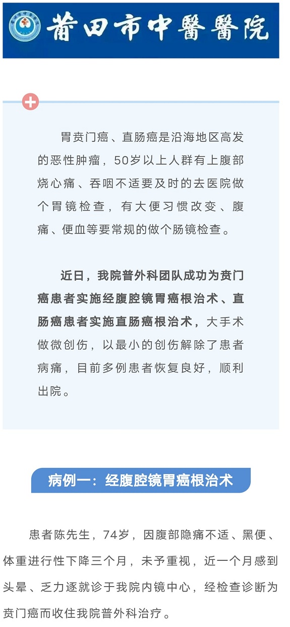 微创下的精准治疗|我院普外科成功开展贲门癌、直肠癌经腹腔镜微创手术